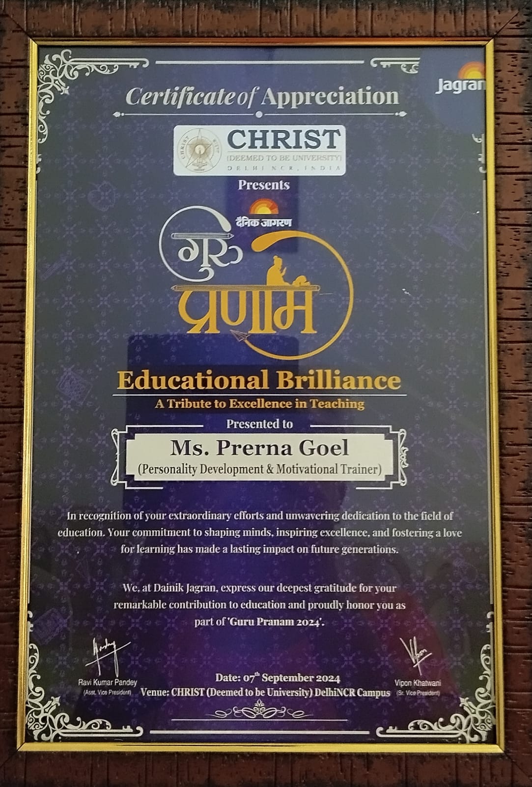 Award of Excellence in Teaching